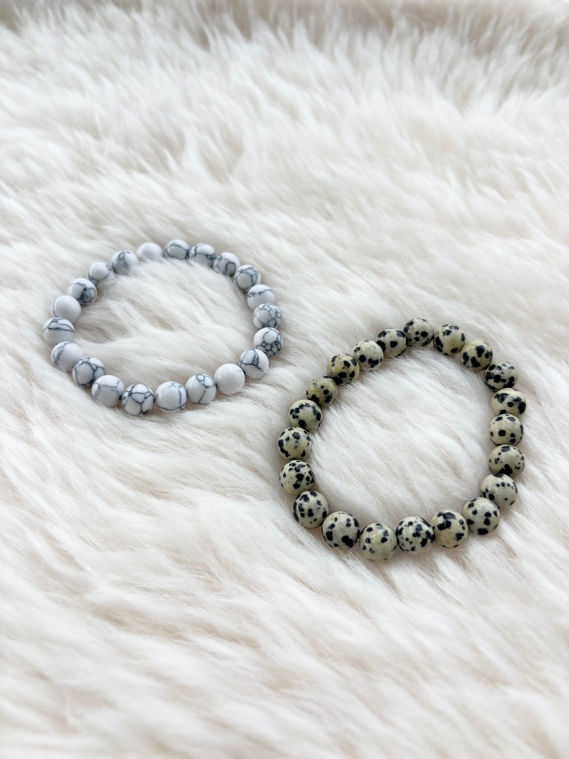 Craquez pour ce duo tendance composé de deux bracelets élastiques en perles effet pierre. Leur design marbré et tacheté apporte une touche moderne et originale, parfaite pour compléter vos tenues au quotidien.