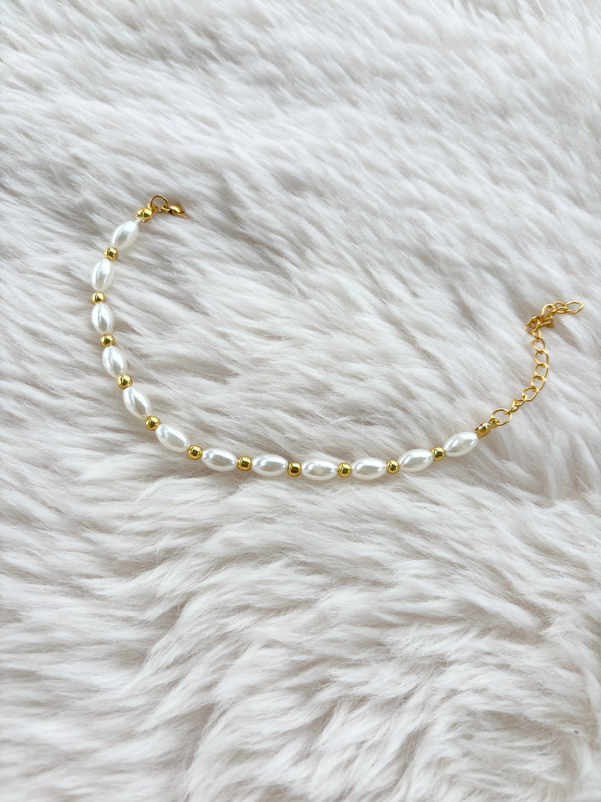 Élégance et raffinement réunis dans cet ensemble composé d’un collier et d’un bracelet assorti. Les perles blanches, délicatement séparées par des perles dorées, créent un bijou intemporel qui sublime toutes les tenues.