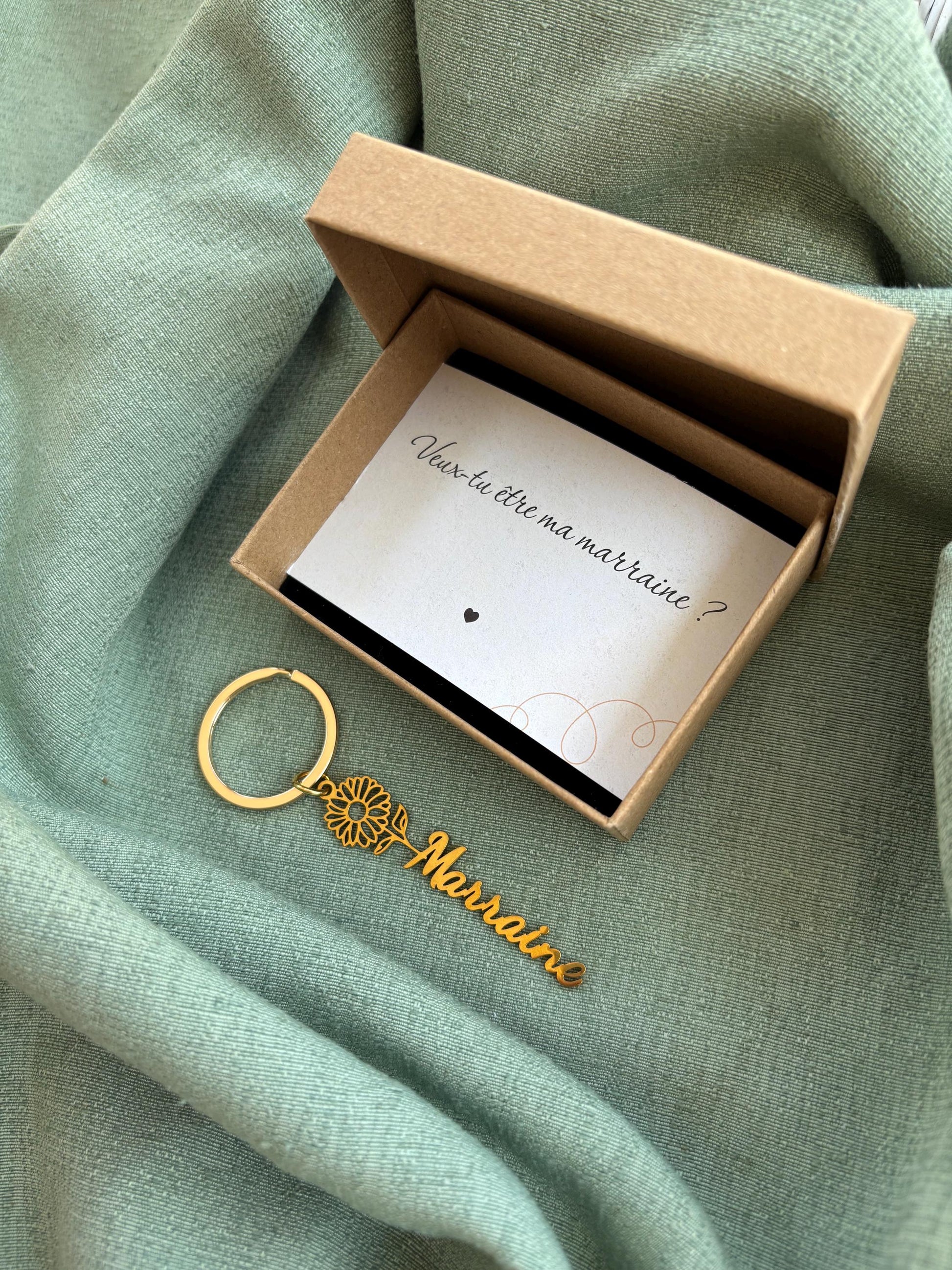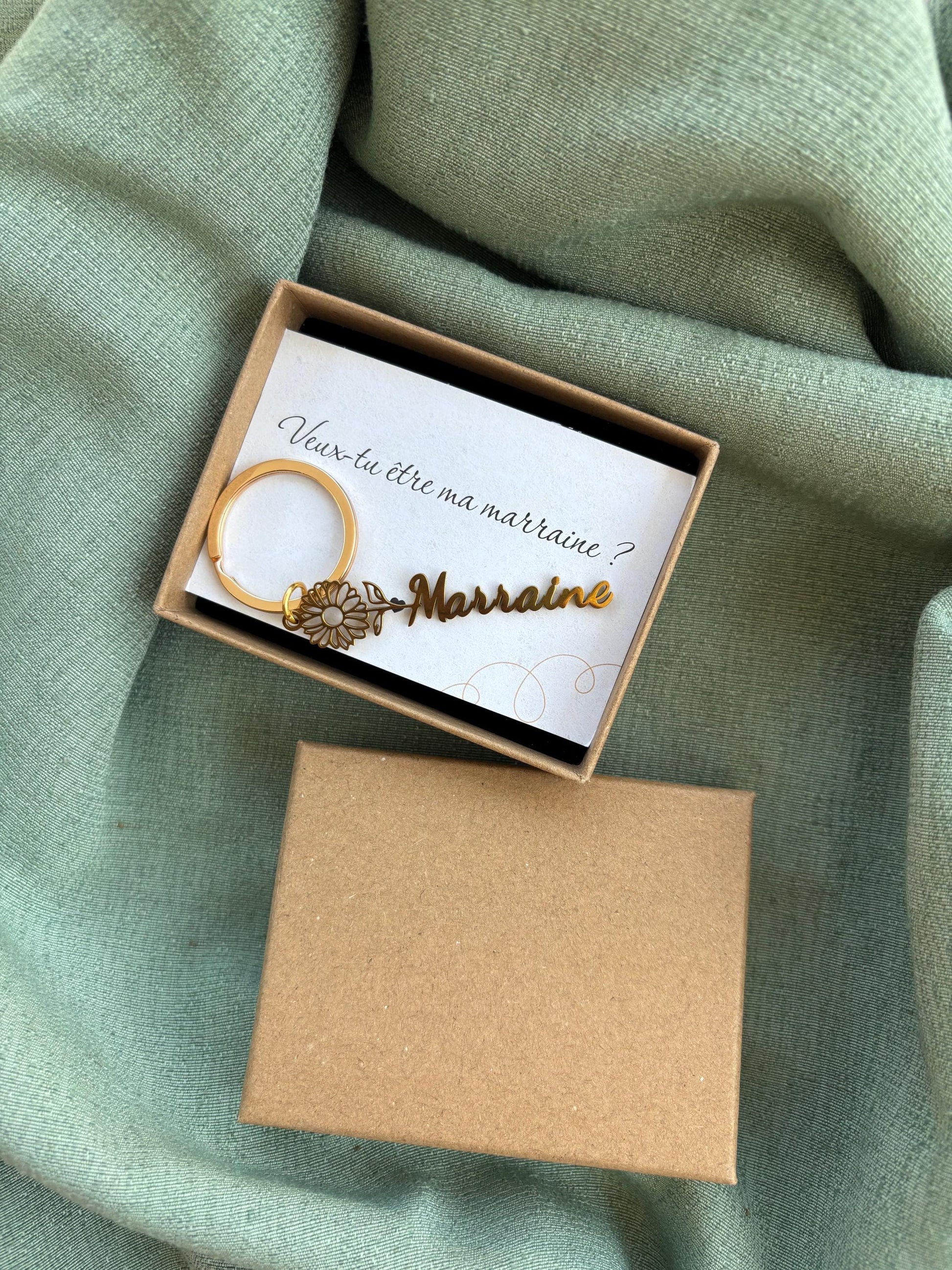 1 porte-clés en acier inoxydable doré gravé « Veux-tu être ma marraine ? »
