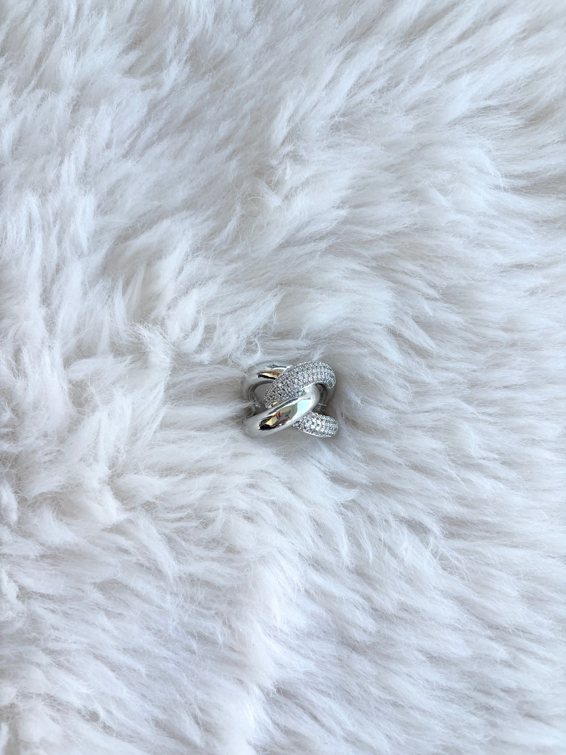 - Design : deux anneaux entrelacés, dont un pavé de strass